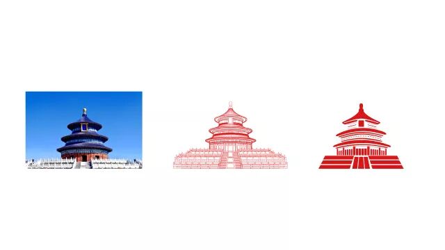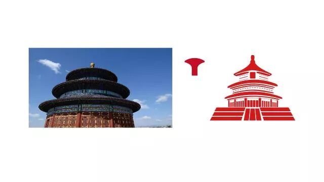 从下仰望祈年殿,祈年殿圆丘的檐成为了LOGO的上下弧。