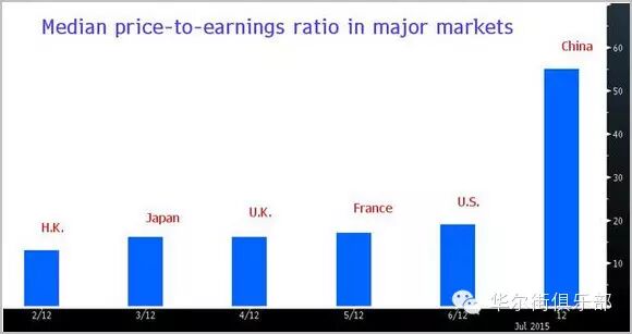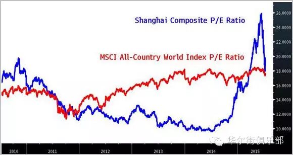 上证综指: 彭博汇总的数据显示,这一基准股指基于过去12个月收益的市盈率目前大约是20倍,虽然与6月中旬股市顶峰时的26倍相比已经有所回落,但依然远远高于13.4倍的五年平均水平。