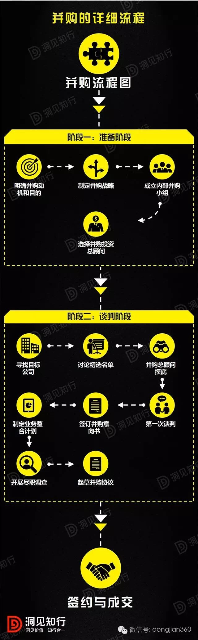 并购过程一般可分准备阶段、谈判阶段和签约、成交阶段,其具体步骤为: